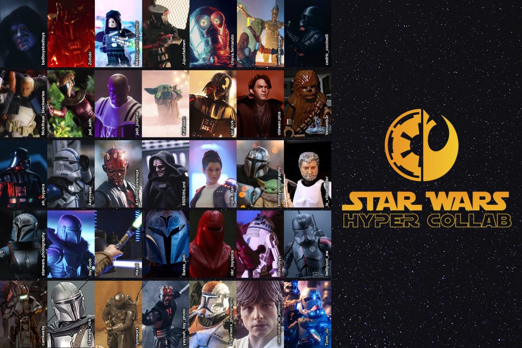Mani a eu la folle idée un jour, de faire une grande collab. Une “hyper collab” comme il l’a lui même nommée, autour de l’univers Star Wars. Rassembler nombre de passionnés de toy photography de figurines, pour réaliser la plus grande galerie non concertée de clichés Star Wars. Pas de crossover, pas de mélange de licences, on reste exclusivement dans du Star Wars, par contre aucune restriction sur la création : tant que ça pourrait être un screenshot d’un des films ou séries, ça passe ! Du coup après avoir pris contact avec des dizaines de photographes français et internationaux, est née la première Hyper Collab Star Wars.